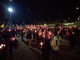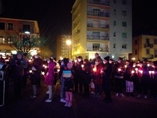 Una fiaccolata silenziosa è partita dal piazzale della chiesa di Cristo Risorto dopo l'iniziale momento di preghiera. Tante le persone che si sono volute unire al grido di dolore con le loro candele.