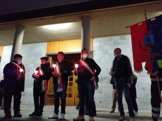 Giunte al teatro La Fabbrica si sono raccolte nella piazza prospiciente dove è stato trasmesso il video di un intervento del fondatore di Emergency Gino Strada sull'abolizione della guerra. Si sono poi susseguiti dei momenti di riflessione tra cui la lettura di due encicliche di papa Francesco da parte del parroco Don Massimo e un breve discorso del sindaco Bruno Toscani.