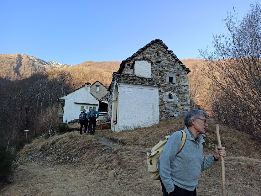 Sei anziani, sempre ben “badati” dalla nostra eroica signora, s’incontrano a Mocogna e proseguono per il comodo parcheggio di Pioi, 869, frazione alta di Bognanco. L’inizio tranquillo della camminata non ci deve ingannare.