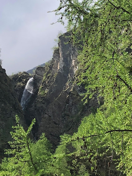 Parcheggiamo comodamente nella bella frazione di Pizzanco, 1142, di fianco alla Scuola Maschile Galletti del 1861. Quella Femminile è a Mulera. Entrambe sono in ottimo stato. Diretti a sud ovest, dopo le case imbocchiamo il sentiero D20 che ci porterà fino a Campo ad incrociare il D98 della GTA. Superiamo il magrissimo Rio Pizzanco e sentiamo il primo profumo di Homo Idroelettricus.