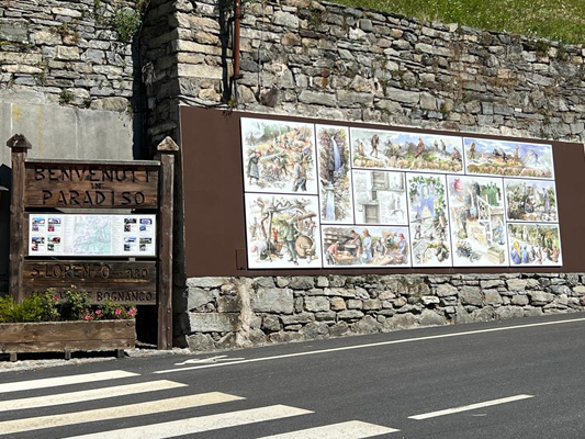 L'istallazione è composta da 11 pennelli che raccontano la storia e gli aspetti più caratteristici della val Bognanco, dalle acque minerali ai lavori d'alpeggio, dalle bellezze naturalistiche alle personalità culturali. L'opera è visibile anche a chi è di passaggio perché si trova all'altezza della chiesa di San Lorenzo, sulla sinistra della strada provinciale.