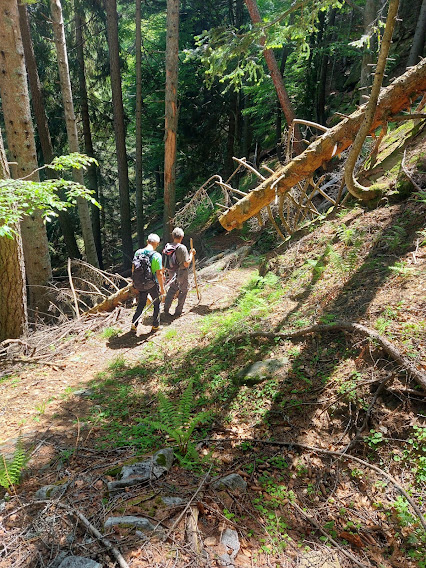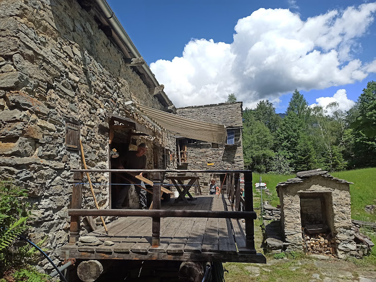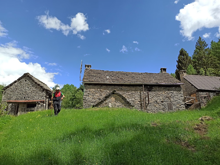 Anche qui i cinghiali arano i prati, ma molto meno che nell’alta Val Bognanco. Passando da un piccolo alpeggio (Patella), raggiungiamo Selvanera di Dentro, 1158, altro piccolo paradiso fra questi monti. E’ il luogo prescelto per una lunga pausa e un giusto ristoro. Qualche ora più tardi dalle baite ci dirigiamo ad ovest e prendiamo l'evidente sentiero che, dopo un tratto pianeggiante sui consueti baratri, scende nel bosco ripido a tornanti e ci conduce alle auto in quel dell’Alpe Salviggia (un’ora da Wolf). A Varzo, in un parco meraviglioso, dimentichiamo le fatiche della giornata.