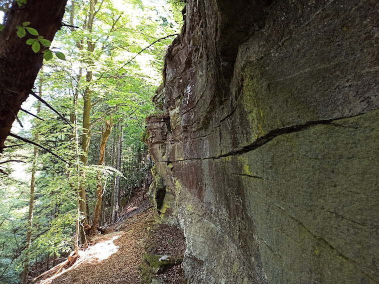 Qui lasciamo il sentiero F03 che sale all’Alpe Lorino e ne seguiamo uno, non indicato sulla cartina CAI più recente, in direzione est che, secondo la nostra guida, è in “falsopiano”. Più che altro si tratta di un piano inclinato, ma verso l’alto, che ci porterà alla quota massima 1650, in un susseguirsi di stupende radure e leggeri saliscendi.