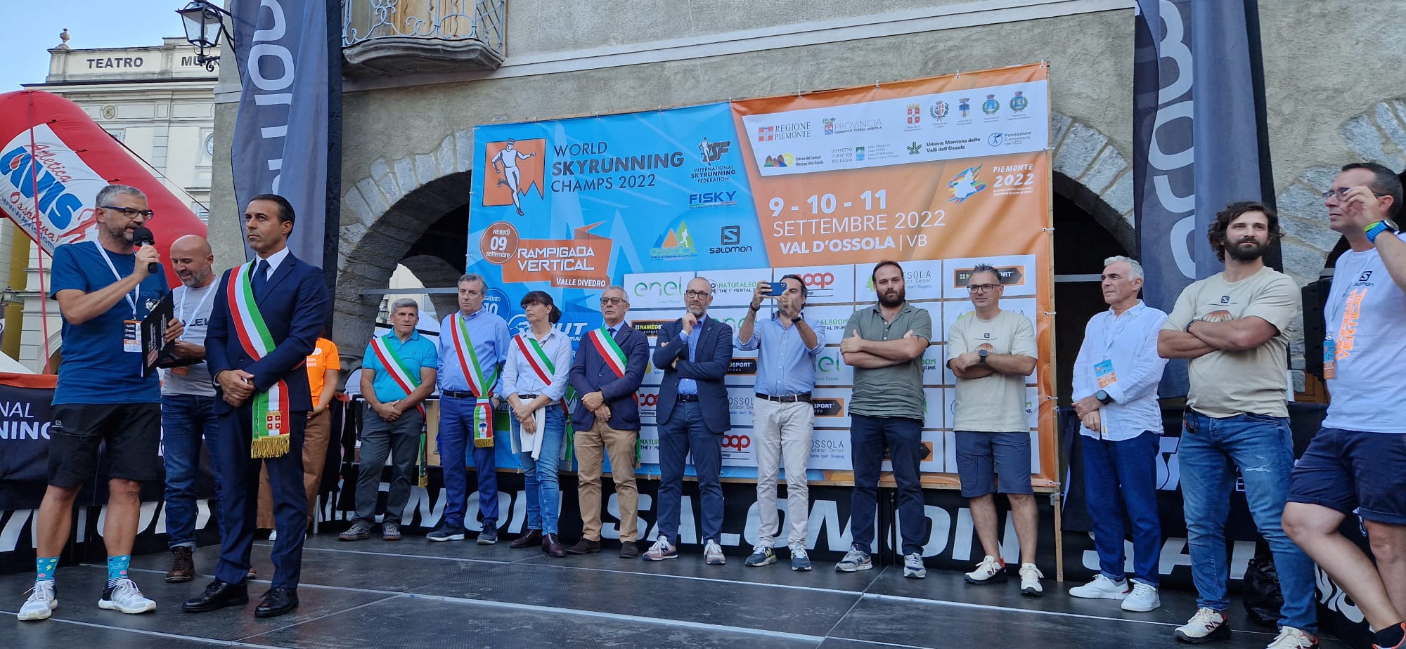 DOMODOSSOLA - 08-09-2022-- Con la cerimonia d'apertura in piazza Mercato, sono partiti tra l'entusiasmo della gente, gli Ossola World skyrunning champ, i campionati mondiali di skyrunning che fino a domenica animeranno le tre Valli ossolane protagoniste della gare (Divedro. Formazza, Bognanco).