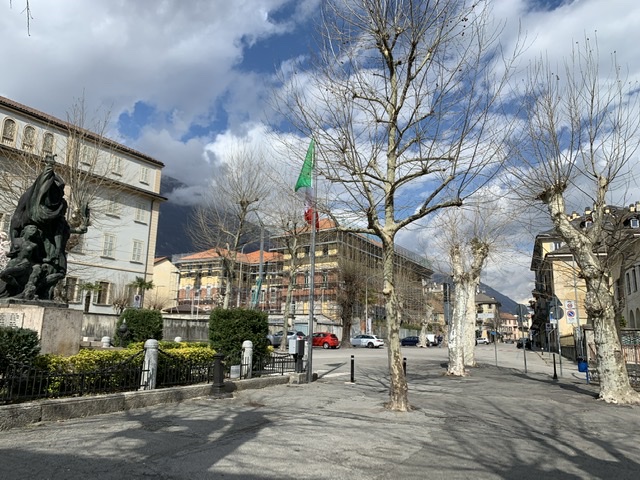 DOMODOSSOLA- 14-03-2020-- Bravi tutti. Era deserta Domodossola questa mattina. Il capoluogo ossolano, che da 1200 anni ospita al sabato il mercato, normalmente frequentato da migliaia e migliaia di persone, valligiani e anche molti svizzeri, era stamane, fortunatamente, una città deserta. Tutti sono stati rispettosi delle norme emanate dal Governo per estinguere l'epidemia del Covid19. Chiusi tutti i locali pubblici ed i negozi, aperte solo le panetterie, i tabaccai ed e i piccoli supermercati. In stazione i treni diretti verso la Svizzera erano praticamente vuoti, quello proveniente da Milano e diretto a Francoforte delle 12,45 portava una decina di persone. Gli agenti della Guardia di Finanza fermavano tutti coloro che passavano dalla stazione, chiedendo l'autocertificazione sulla necessità del proprio spostamento, che verrà successivamente controllata. In caso di falsità c'è la denuncia penale.