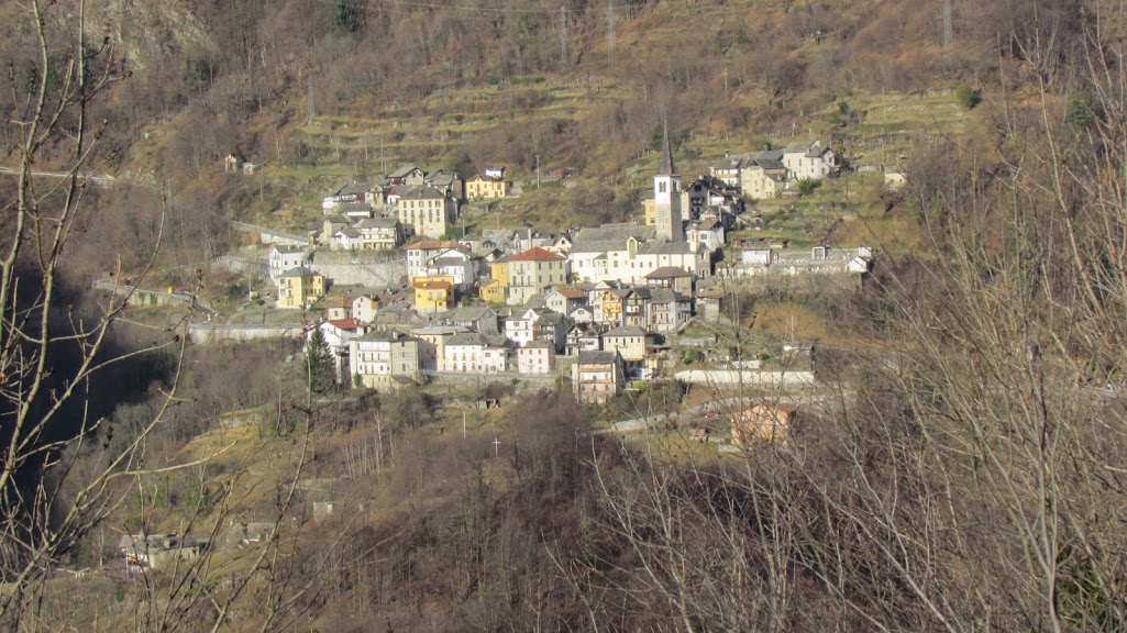 Circa tre ore dalla partenza, pause escluse. Cerchiamo di ripararci al meglio fra le baite per mettere qualcosa sotto i denti al riparo dall’aria gelida che ci manda il Monte Rosa. Le giacche a vento leggere oggi hanno scarso successo, alla faccia del “riscaldamento globale”. Saliamo rapidamente a fotografare la cappelletta con il suo campanile in miniatura che si trova nel vasto ripiano sopra l’alpe. E poi discesa in picchiata fino a Olino, 845, e Crotto, 630. Di qui raggiungiamo rapidamente Ielmala, 658, e scendiamo a Castiglione, 514, su sentieri sempre evidenti. Risaliamo a Case Paita e, a Borca, chiudiamo l’anello odierno. Troviamo il tempo di immortalare l’amico con le cinque costole ben saldate sull’innocuo scivolo traditore che ben ricorda. Ripassando da Meggianella e Meggiana ritorniamo al parcheggio, accompagnati da un’improvvisa nevicata che ci ricorda che è ancora febbraio.
