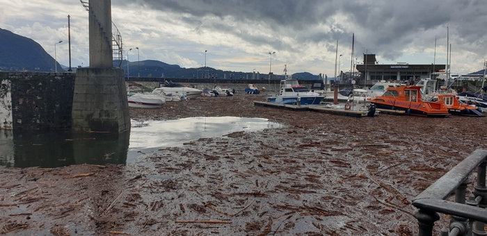 Nell’area del Verbano non si contano gli allagamenti. Numerosi i problemi per piante abbattute dal vento, soprattutto a Ghiffa (sulla statale, di fronte al residence Zust, ma anche all’interno) ma anche a Verbania. Ieri sera il lungolago di Intra è rimasto chiuso per qualche ora dopo che sono crollati alcuni rami di alberi del parcheggio di corso Mameli, tra la Tettoia del vecchio imbarcadero e il porto. Porto che è stato immancabilmente invaso da un’enorme quantità di buzza, finita anche sulla passeggiata, fino in strada.