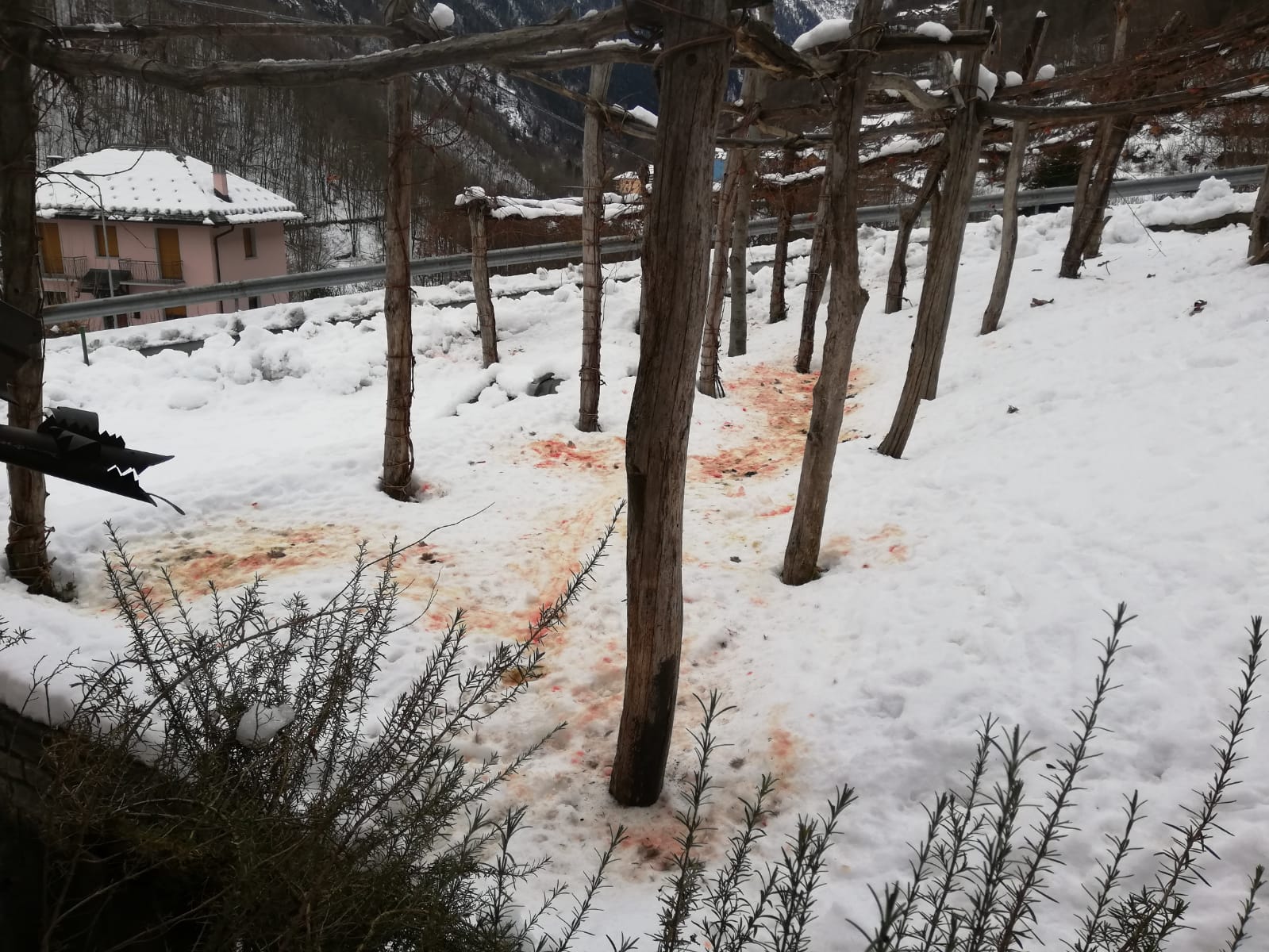 E' successo la scorsa notte a Viganella, nei pressi dell'abitazione di Pierfranco Midali, ex sindaco e presidente dell'Associazione produttori agricoli ossolani, che ha avvisato la polizia provinciale per le indagini del caso: "Stamane quando ho aperto la porta d'ingresso ho visto un'enorme macchia di sangue- spiega- eppure questa notte non abbiamo sentito niente.