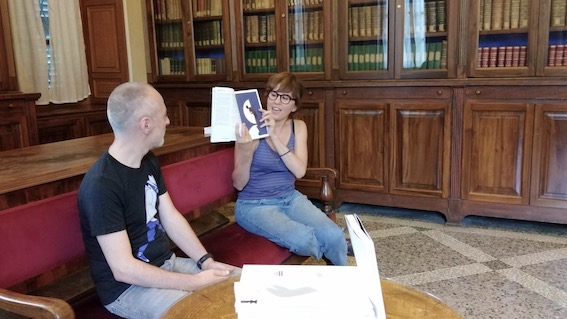 DOMODOSSOLA - 04-07-2021 -- Gianluca Folì, artista visuale pluripremiato, ha presentato il suo nuovo libro, " Ostinato sguardo" ieri, sabato 3 luglio, nella biblioteca del Collegio Rosmini, a pochi metri (è al piano sottostante) dalla mostra " Ostinato sguardo. Gianluca Folì, vent'anni di idee, poetica, tratti e colori. Un viaggio tra gli strumenti, la concretezza e gli umori di un mestiere", inaugurata una settimana fa. L'illustratore romano riconosciuto e premiato a livello internazionale, in questo libro ripercorre il suo percorso ventennale come artista. Folì dopo la presentazione di Paolo Lampugnani presidente associazione Musei d' Ossola ha dialogato con Maria La Duca, founder ed editor in Chiefs del magazine "Illustratore Italiano".