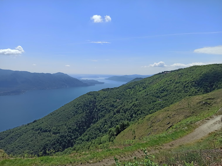 Lungo scorciatoie note solo alle guide odierne saliamo in auto a Premeno, Pian di Sole e parcheggiamo poco prima di Manegra, a quota 800 circa. Attraversiamo la strada ed entriamo nel bosco, diretti a occidente. Inizialmente in discesa, recuperiamo subito il sentiero pianeggiante che, con brevi saliscendi e passando per l’Alpe Erbia, 754, ci porta ad Aurano, 683, in poco più di un’ora. Il paese, come gli altri qui in zona, è più verticale che orizzontale. Scendiamo al Circolo per un buon caffè prima di iniziare la parte “faticosa” della giornata. Risaliamo nella parte alta del paese e proseguiamo sulla strada asfaltata in direzione nord est.
